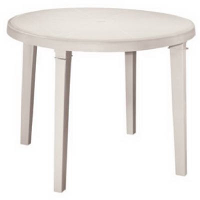 Versatile 38-Inch dining table in lightweight, easy-care resin makes dining outdoors a snap. Great for backyard barbecues, parties.