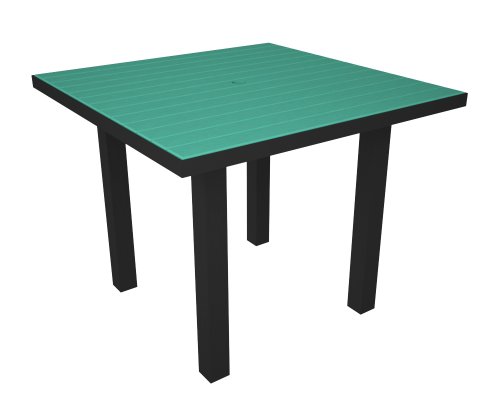Polywood Euro All-Weather Dining Table, Black with Turquoise Slats Review