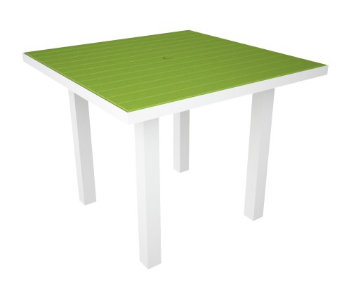 Polywood Euro All-Weather Dining Table, White with Lime Green Slats Review
